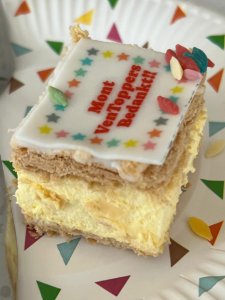 Een aantal handige Montventoppers zijn afgelopen zomer meerdere dagdelen en avonden bouwkundig bezig geweest met de realisatie van een overkapping voor de bewoners van Amarant. Daarom werden we blij verrast met een taartje. Wat een leuke verrassing!